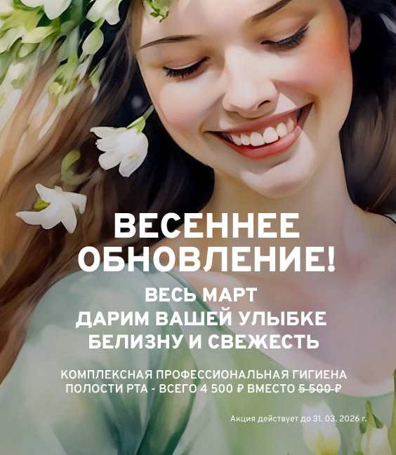 Комплексная профессиональная гигиена полости рта — всего 4 500 ₽ вместо 5 500.